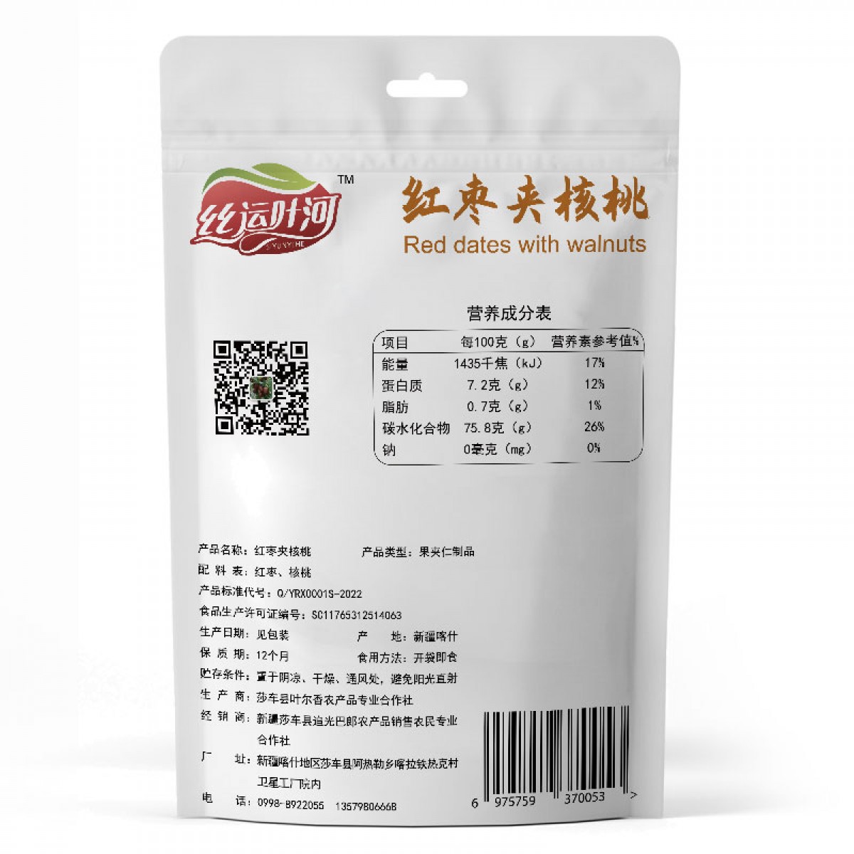 商品名称:莎车叶尔香农产品丝运叶河红枣夹核桃250g/袋×3袋