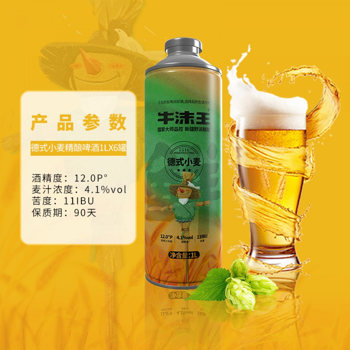 商品名称:新疆乌苏市牛沫王鲜啤德式小麦精酿啤酒新疆礼物高端啤酒1L*6罐