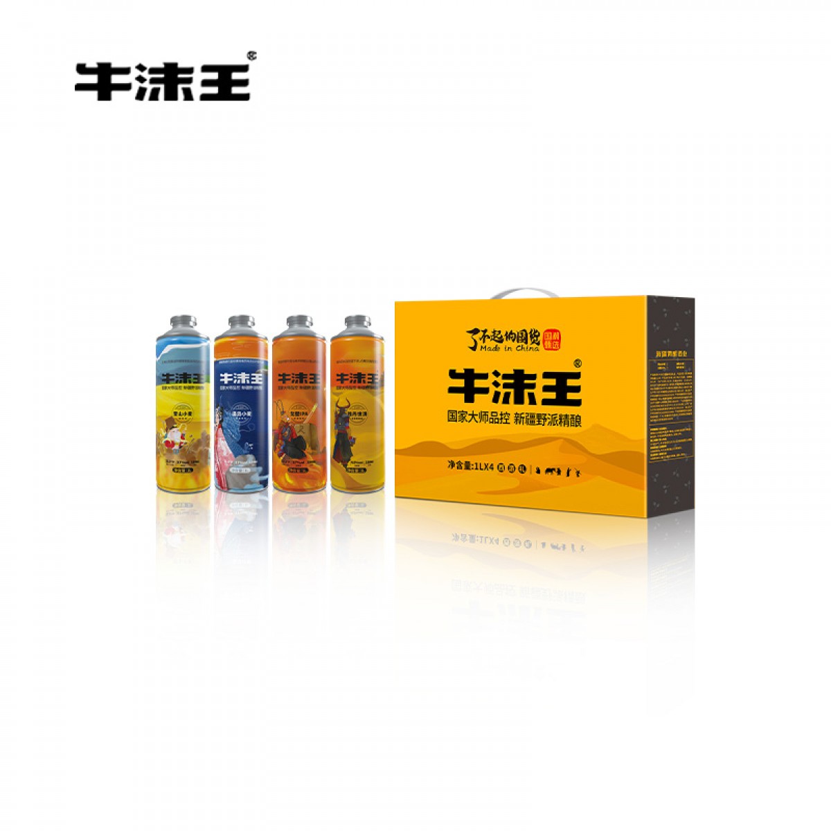 啤酒乌苏市精酿啤酒牛沫王混合礼盒装精美礼盒新疆礼物熟啤1L*4罐