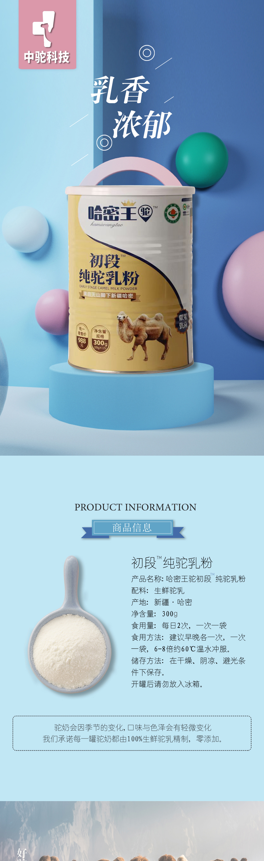 新疆哈密王驼初段纯驼乳粉新疆驼奶粉无添加双有机300g(20g*15袋)