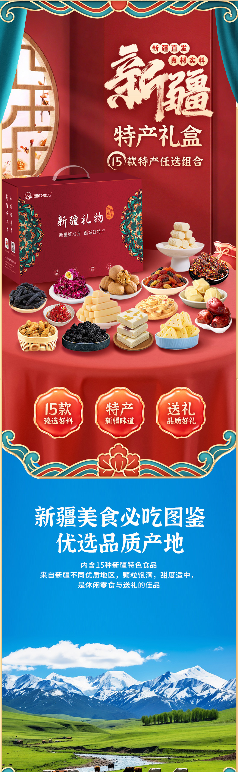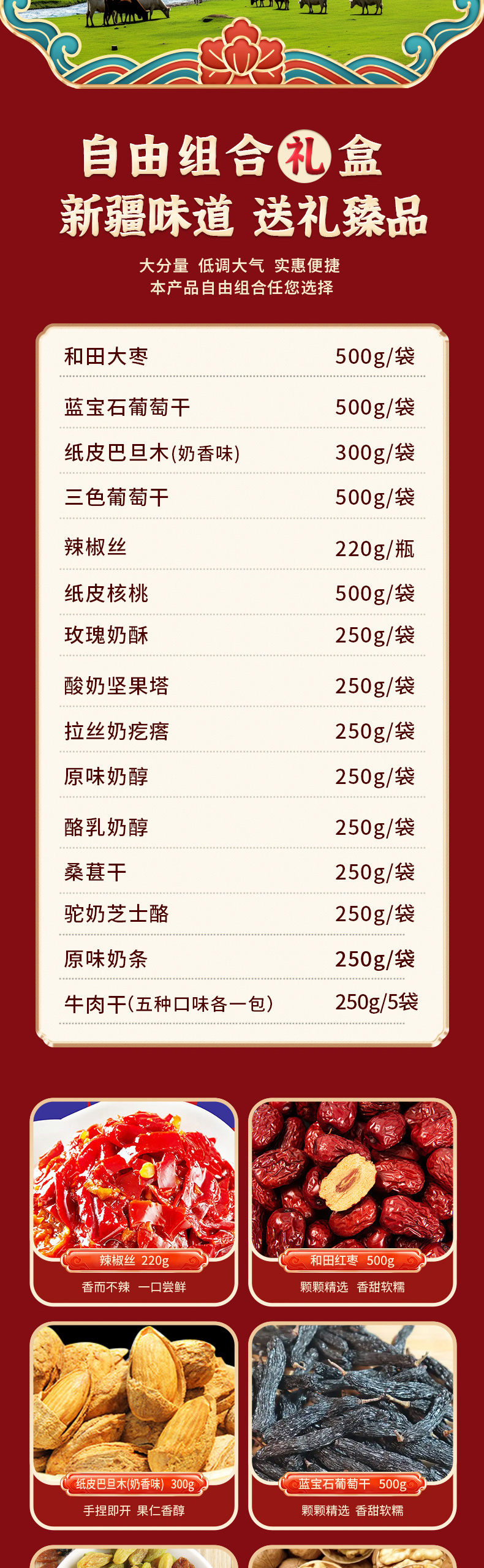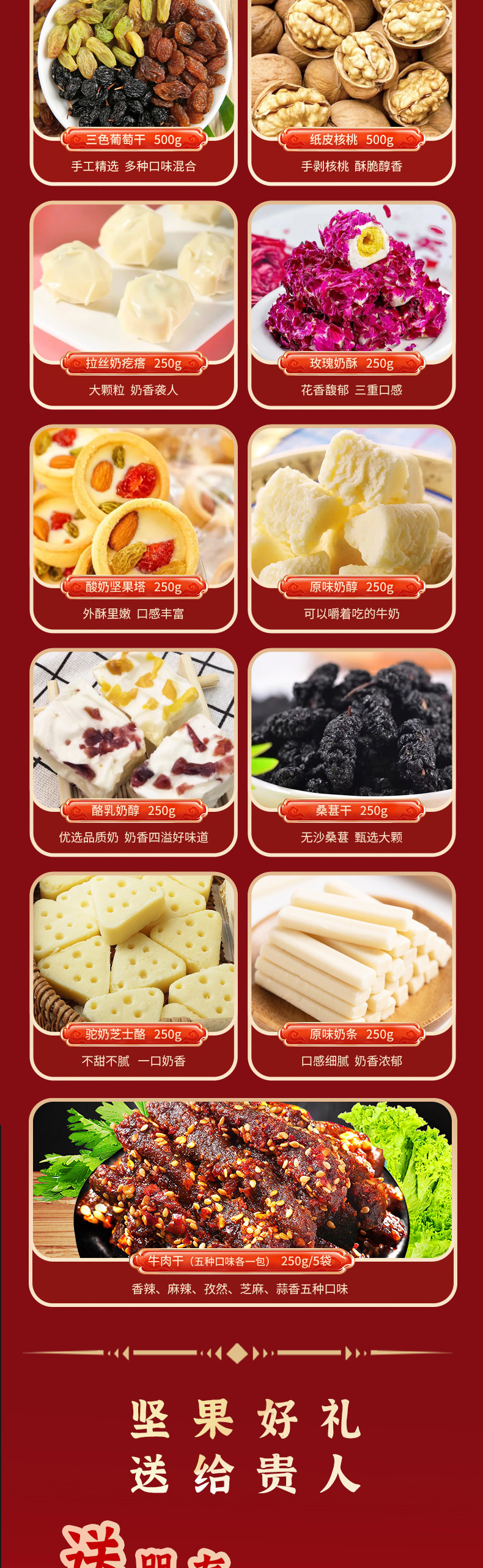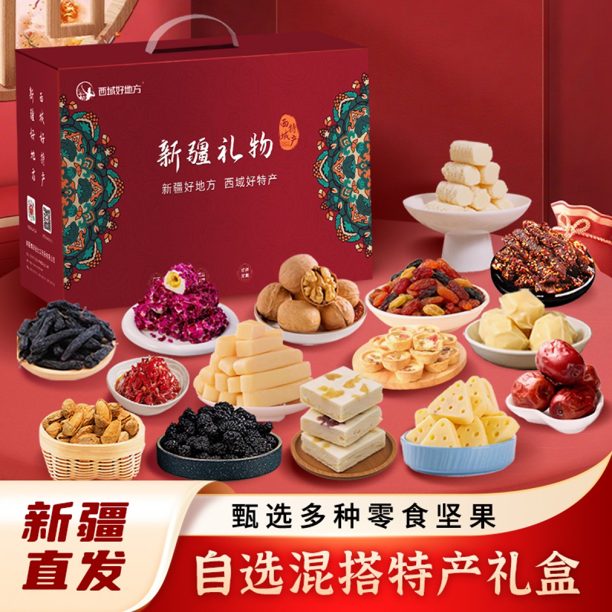 商品名称:新疆干果奶制品礼盒15种不同干果坚果奶制品零食随意搭配全国包邮精美礼盒