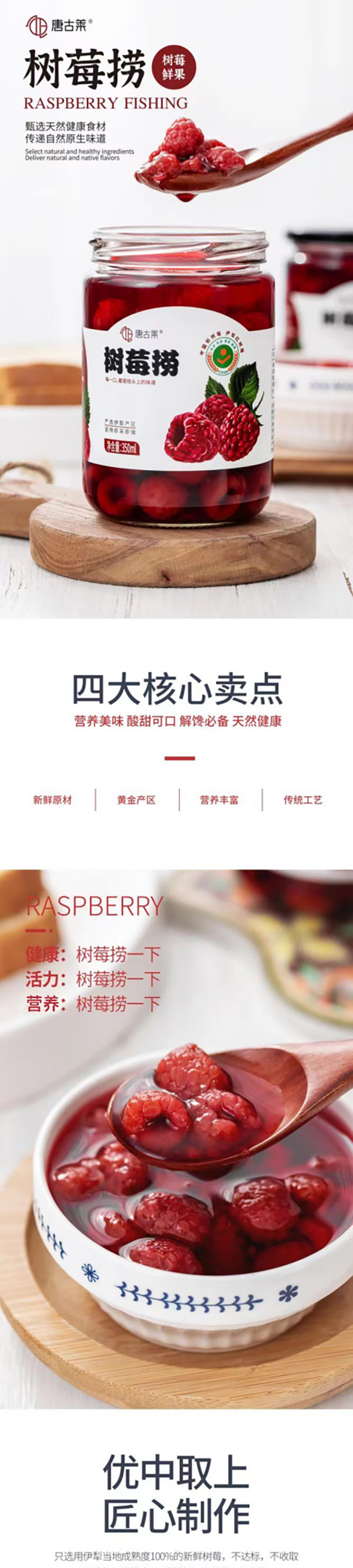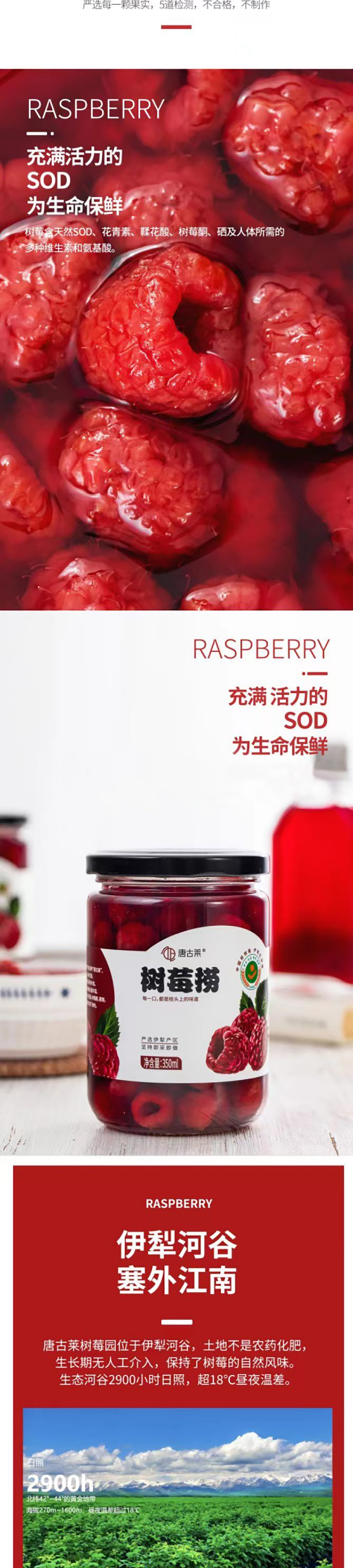 商品名称:新疆唐古莱树莓捞鲜树莓罐头350克*4罐精品浆果酸甜可口天然健康