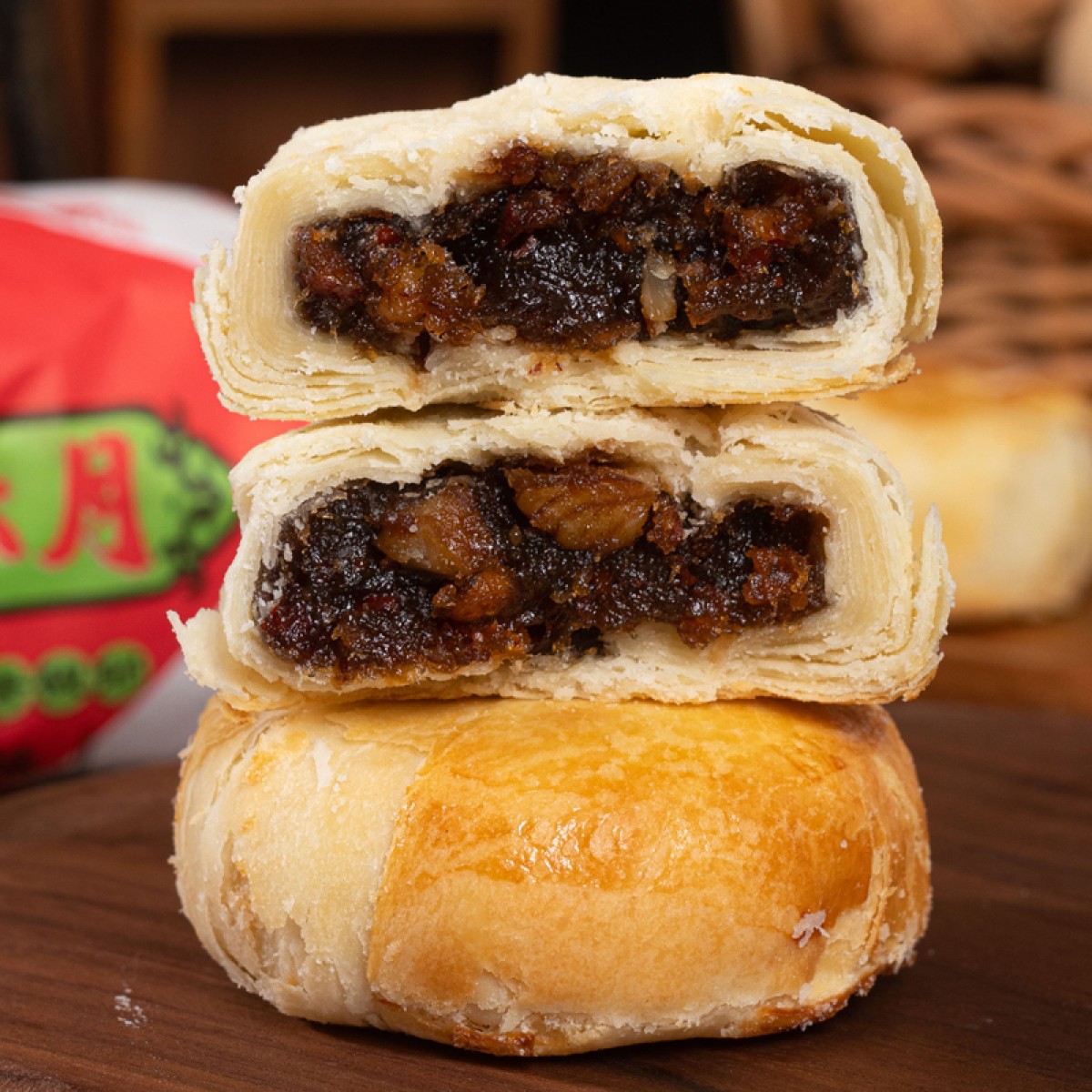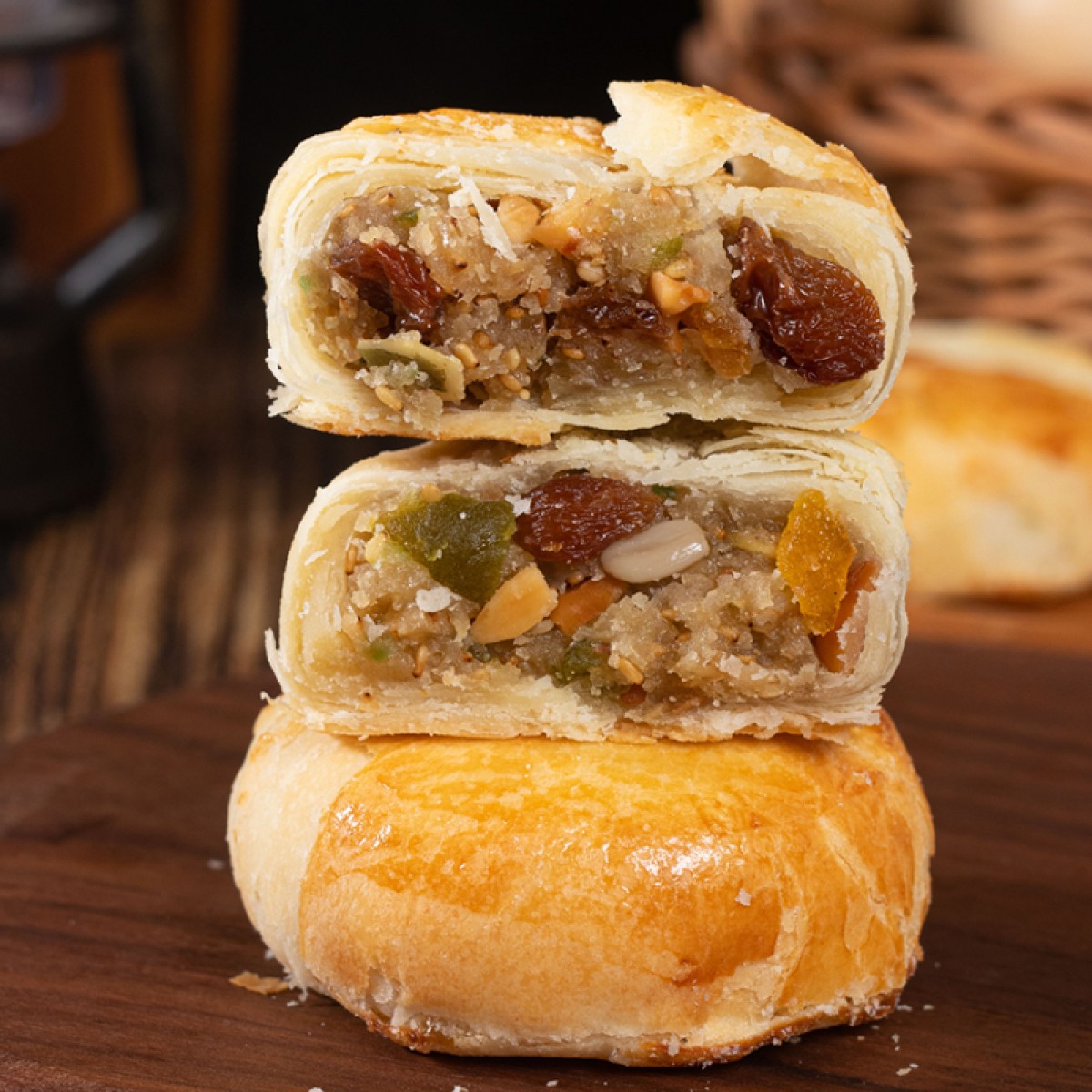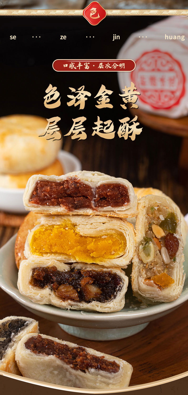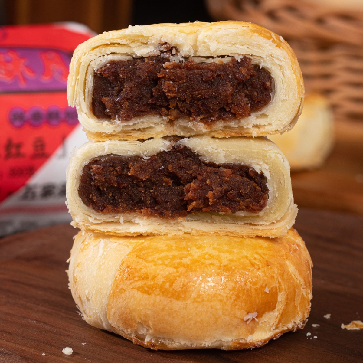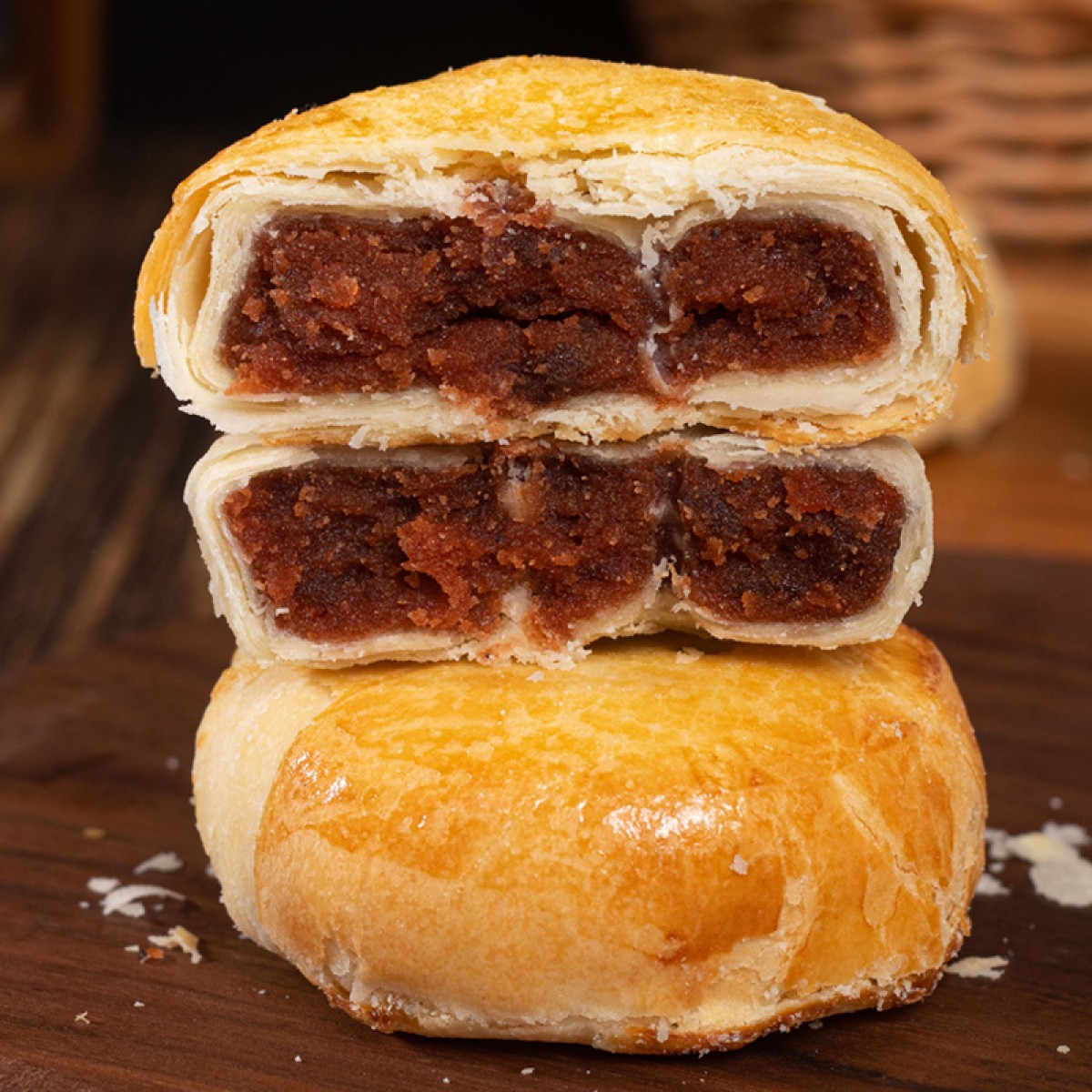 商品名称:盼月新疆天山酥月酥皮月饼传统糕点枣肉核桃红豆伍仁金沙蛋黄中秋300g*3筒