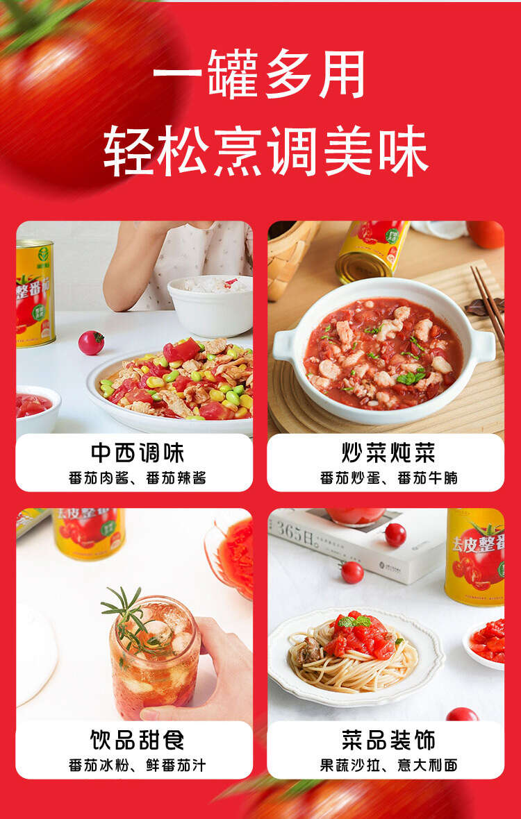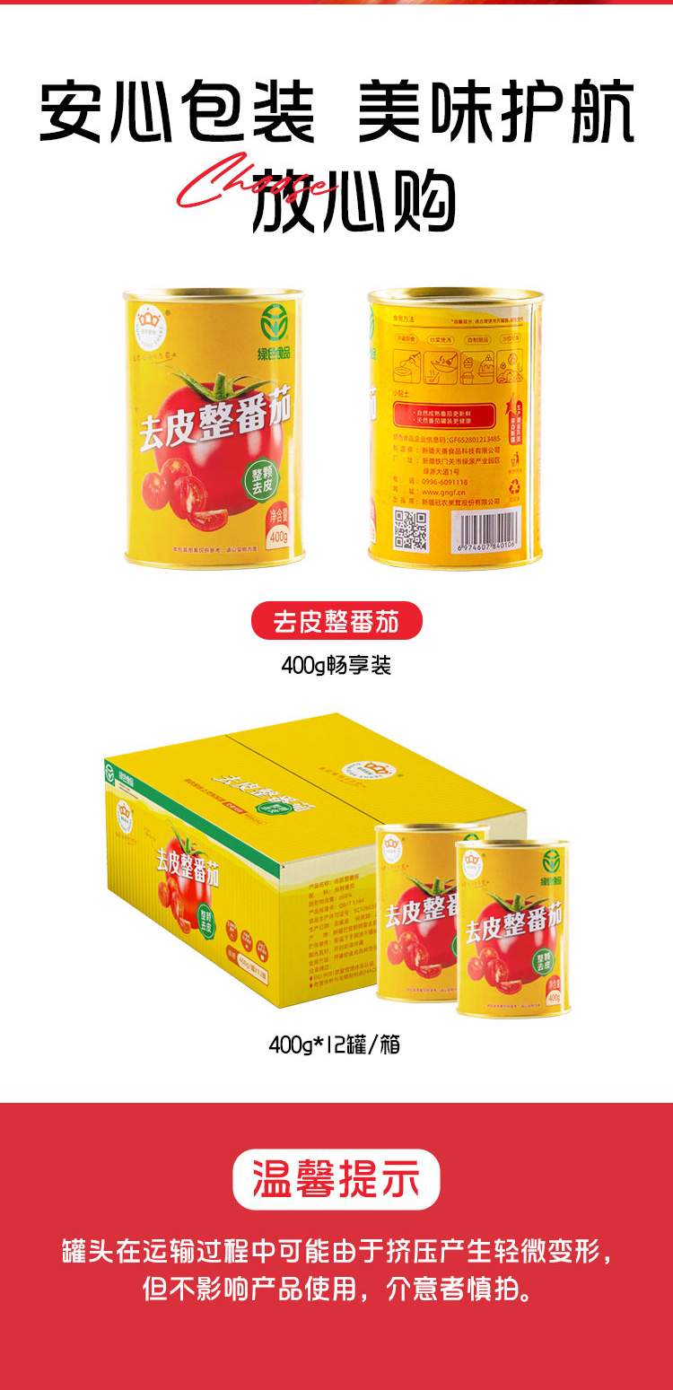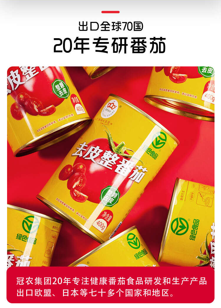 商品名称:【24年8-9月生产】冠农去皮整番茄400g 西红柿 绿色食品认证【京东/顺丰】400g*12罐
