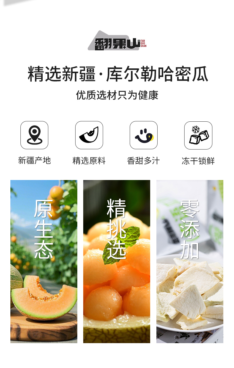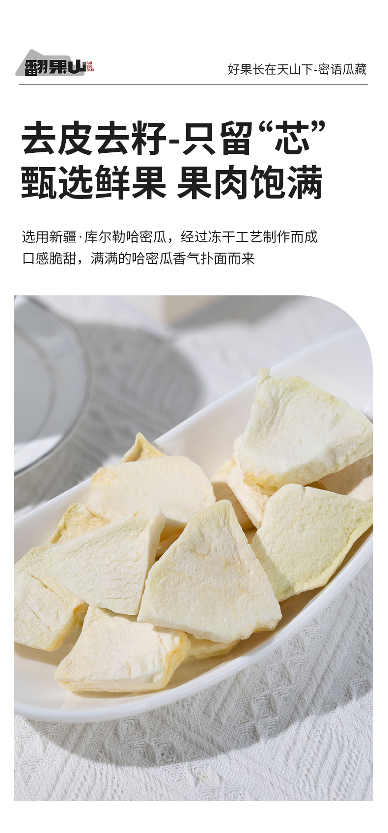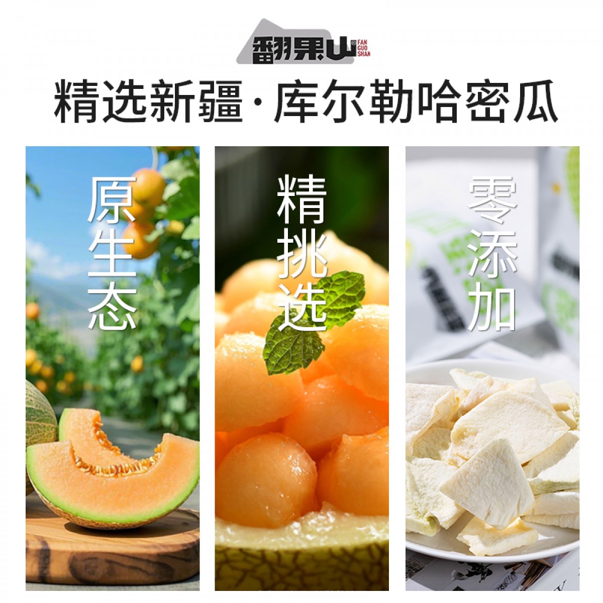 商品名称:翻果山新疆冻干水果哈密瓜冻干零添加非油炸25g三袋