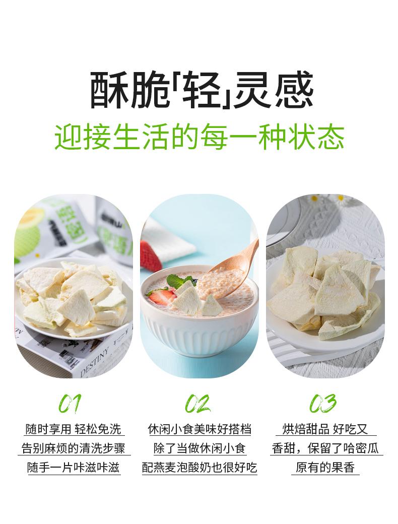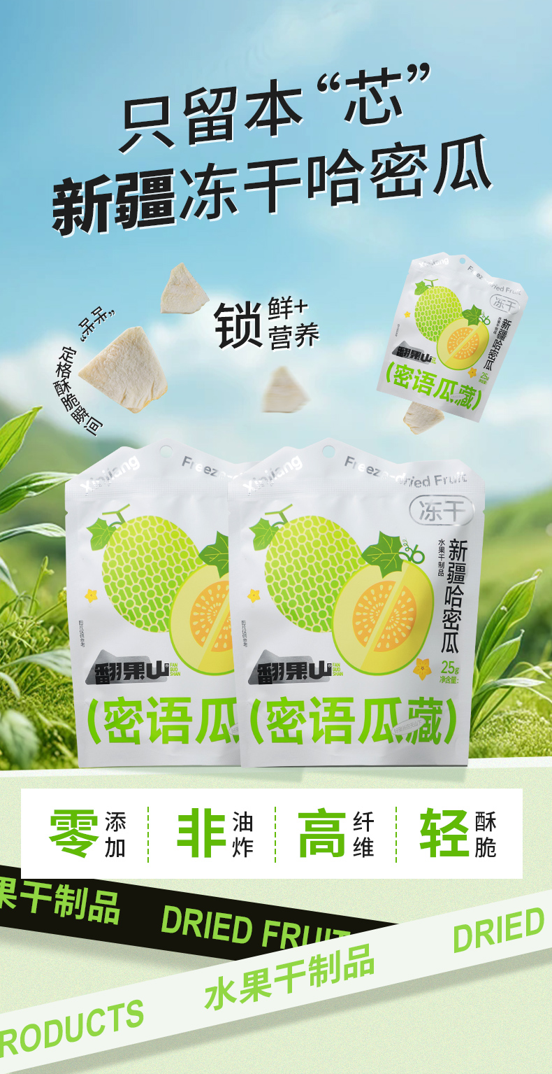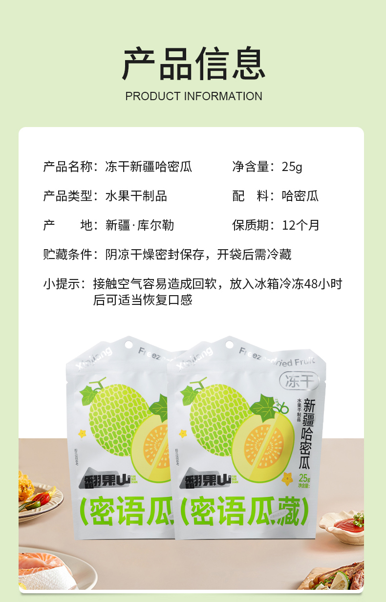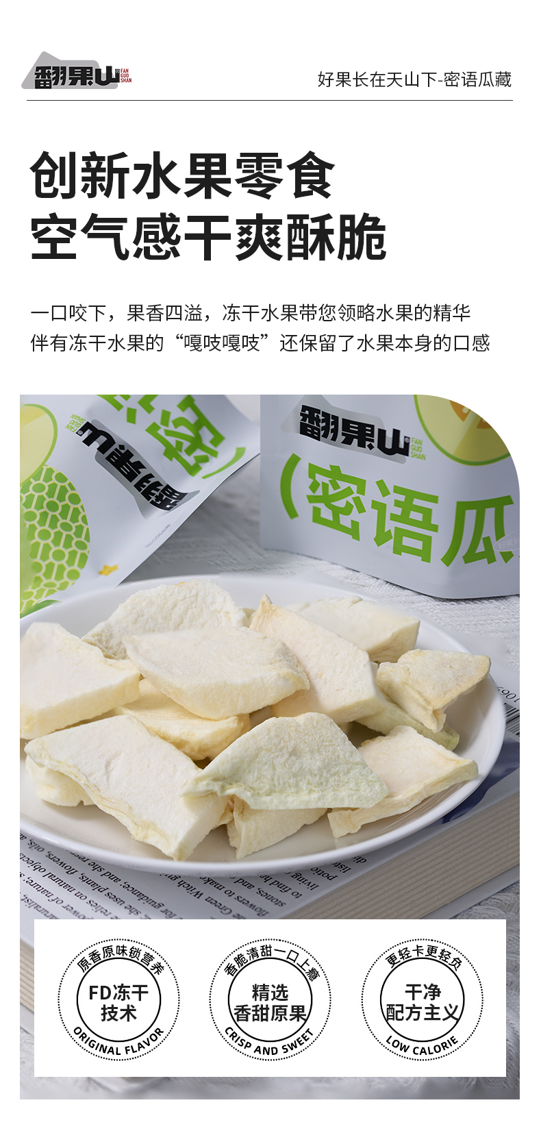 商品名称:翻果山新疆冻干水果哈密瓜冻干零添加非油炸25g三袋