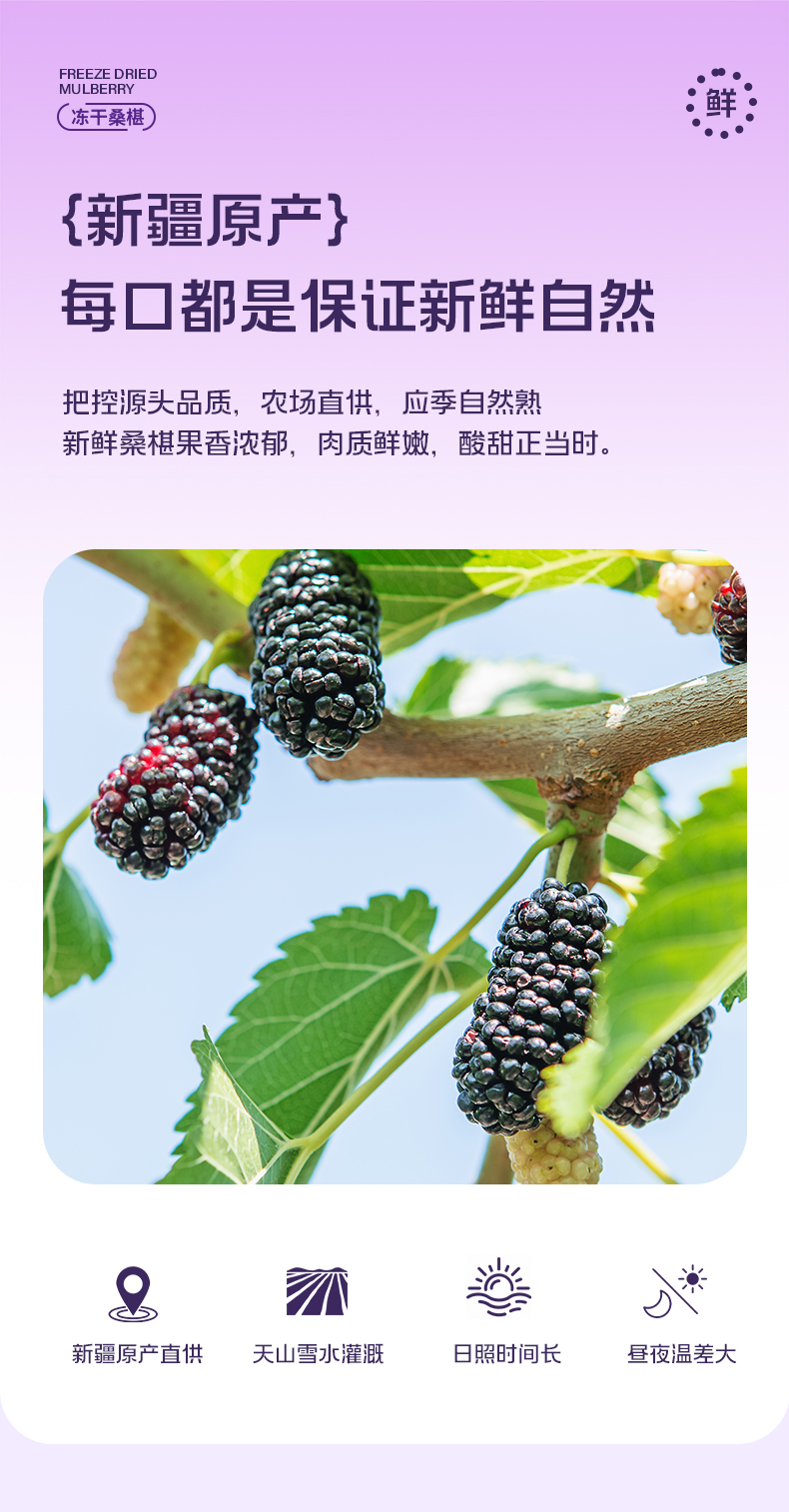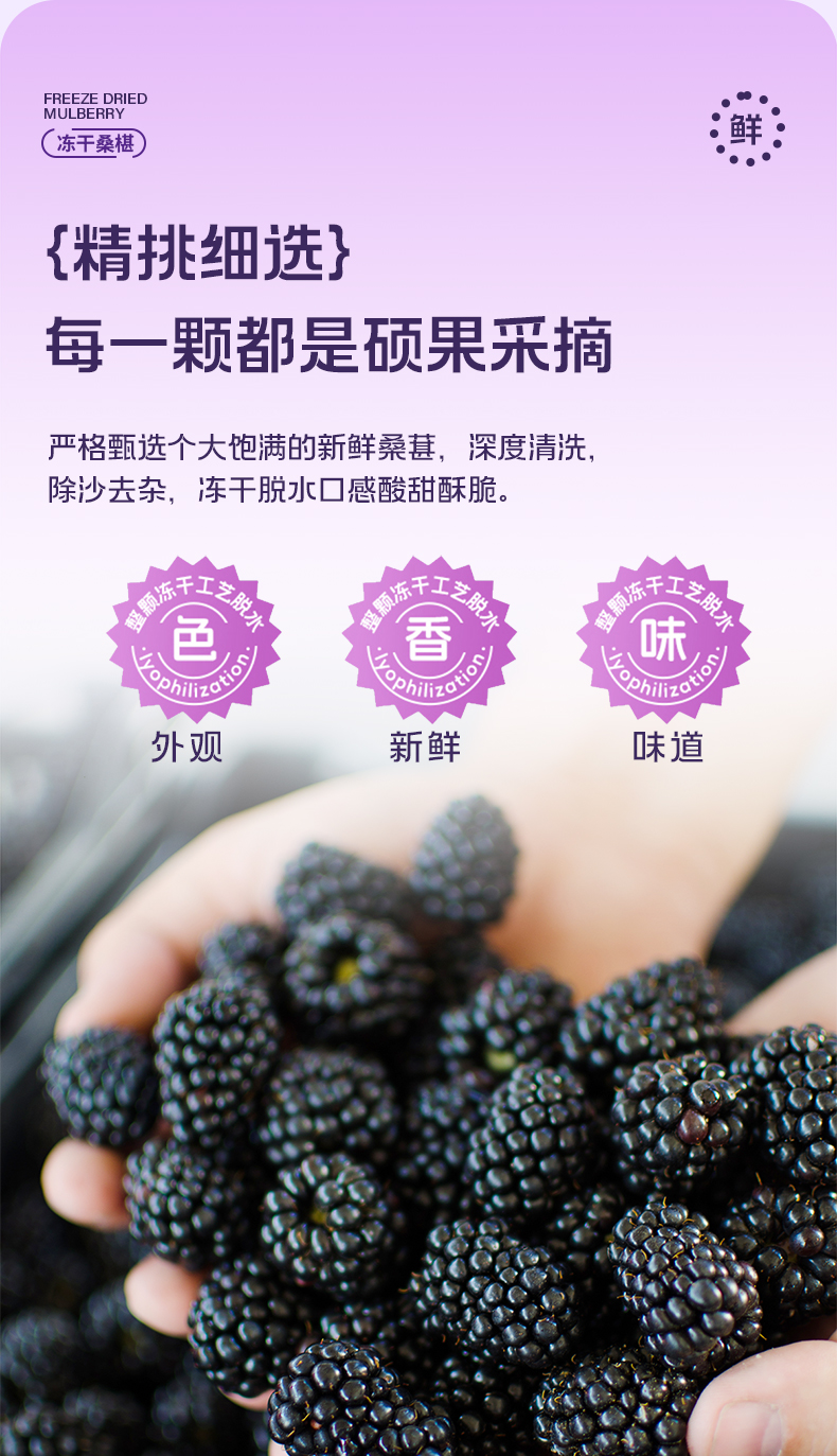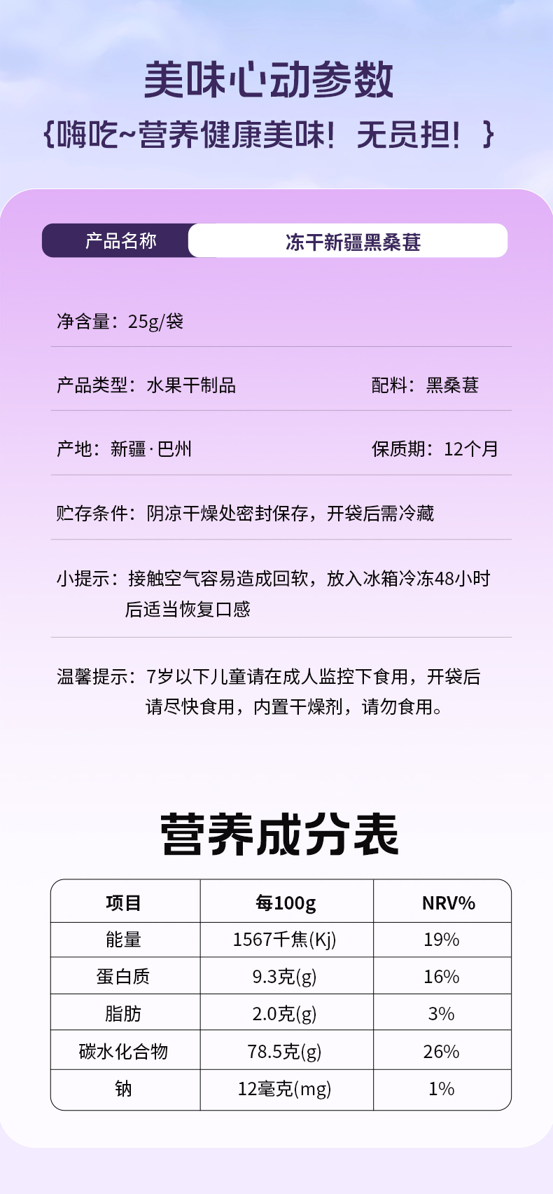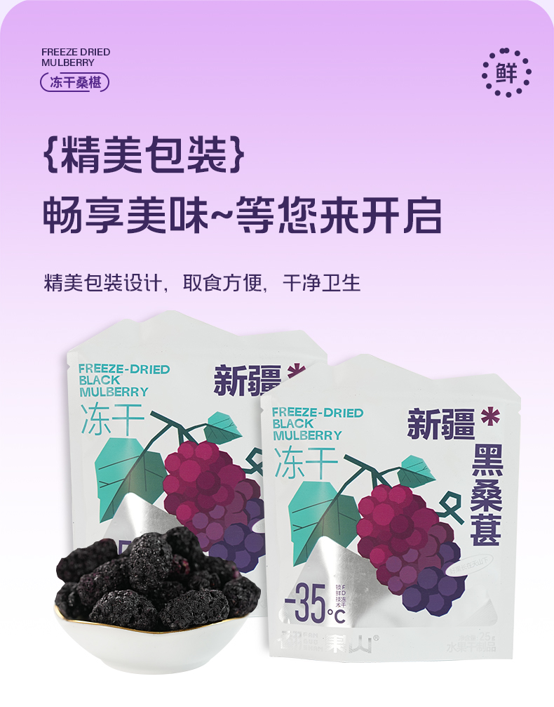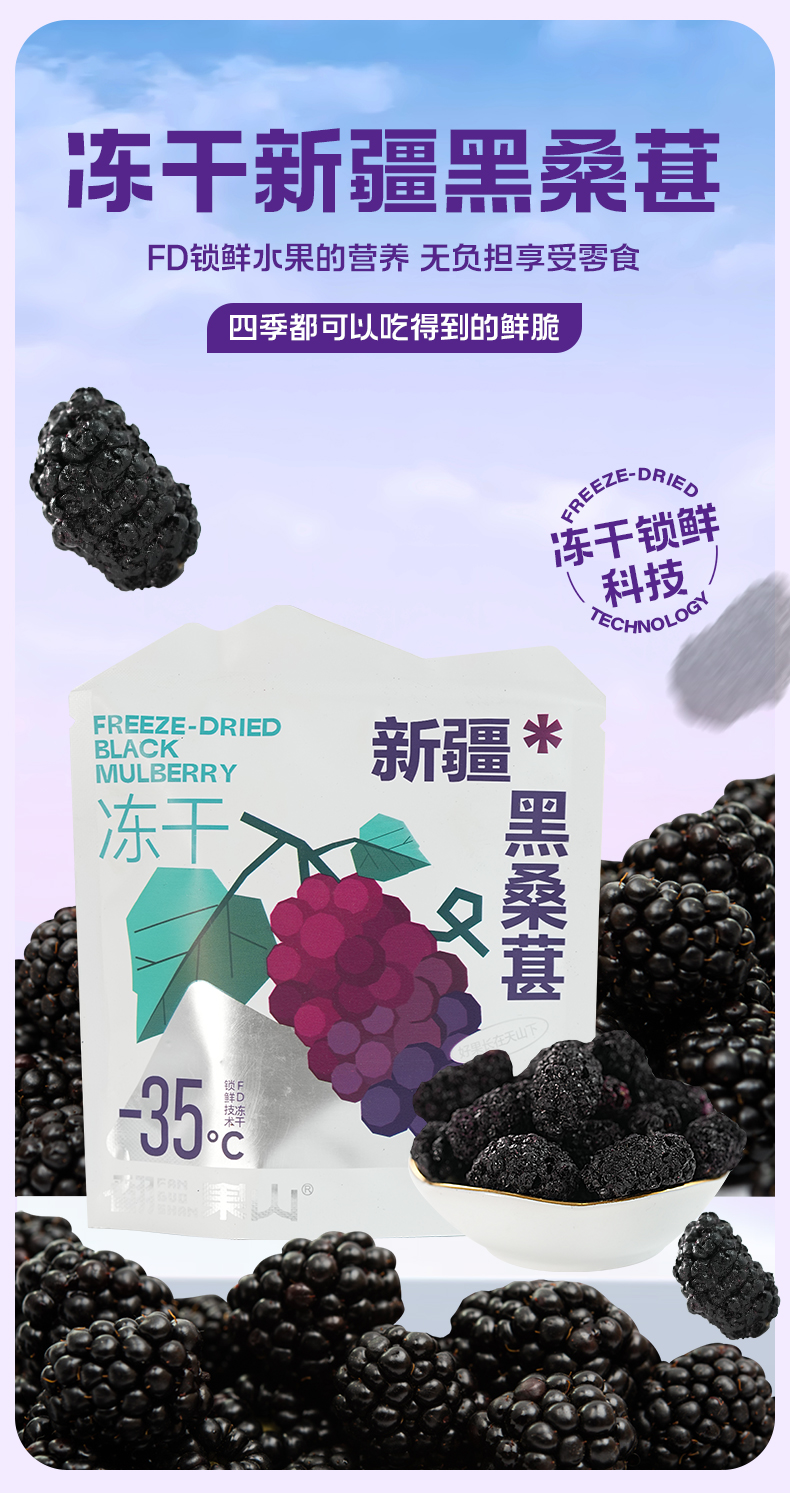 商品名称:翻果山新疆冻干水果桑葚冻干零添加非油炸25g三袋