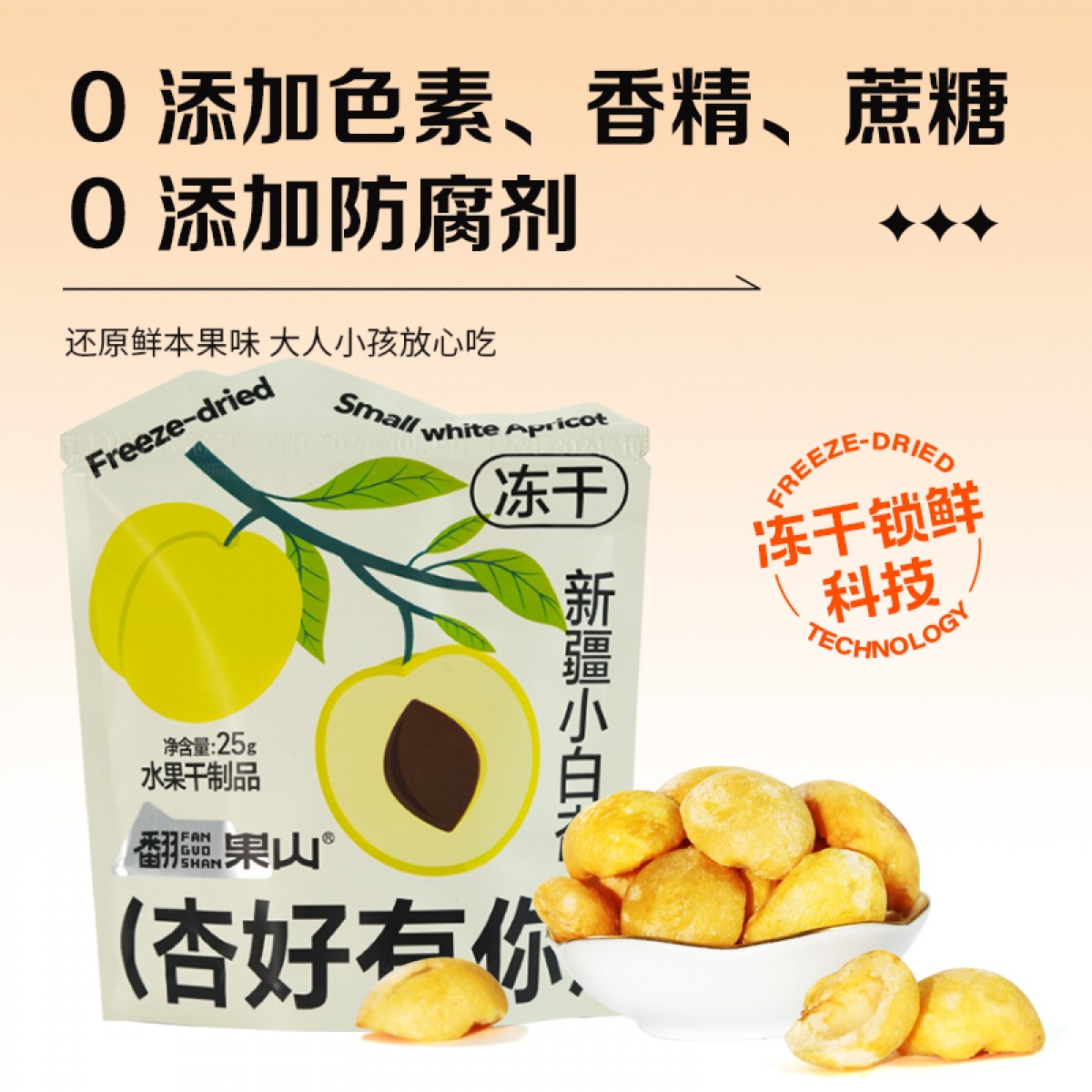 翻果山新疆冻干水果小白杏冻干零添加非油炸25g三袋