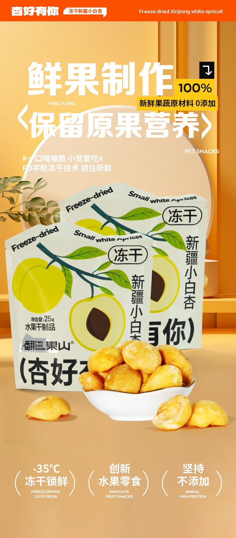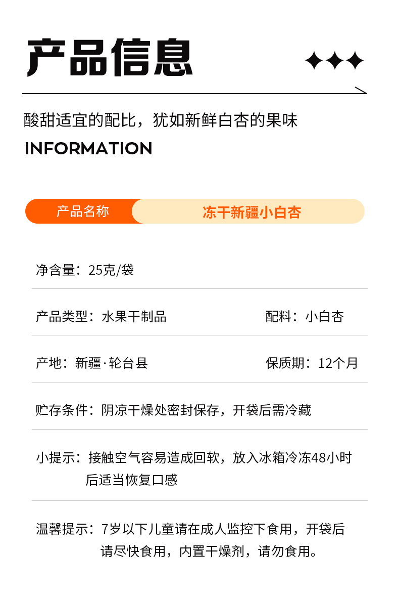 商品名称:翻果山新疆冻干水果小白杏冻干零添加非油炸25g三袋