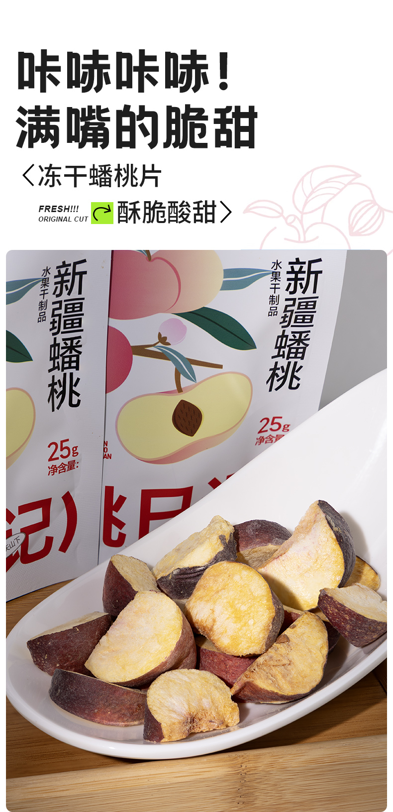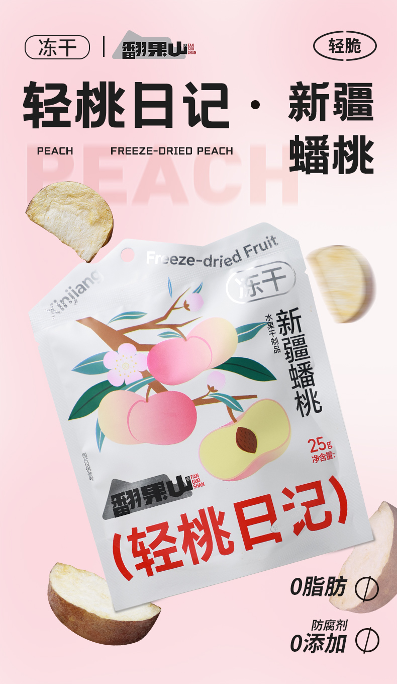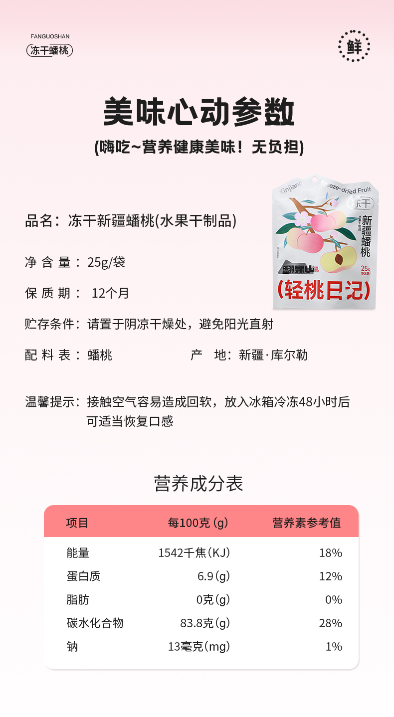 商品名称:翻果山新疆冻干水果蟠桃冻干零添加非油炸25g三袋
