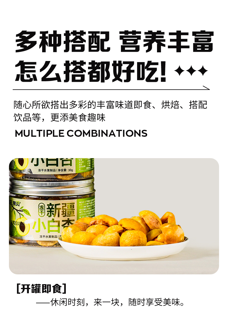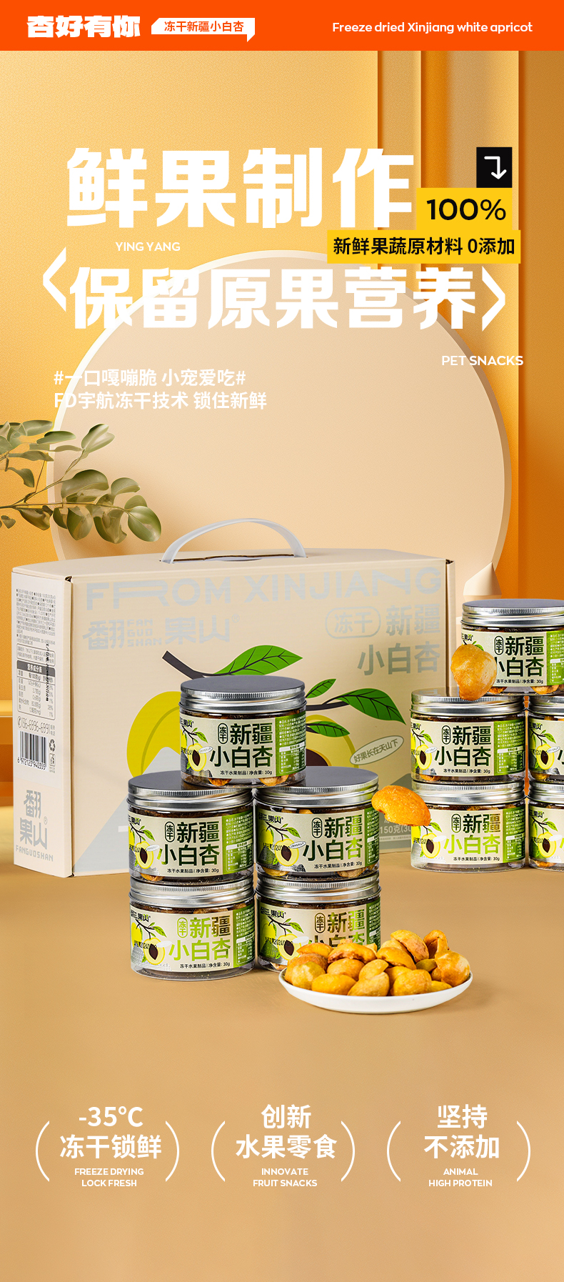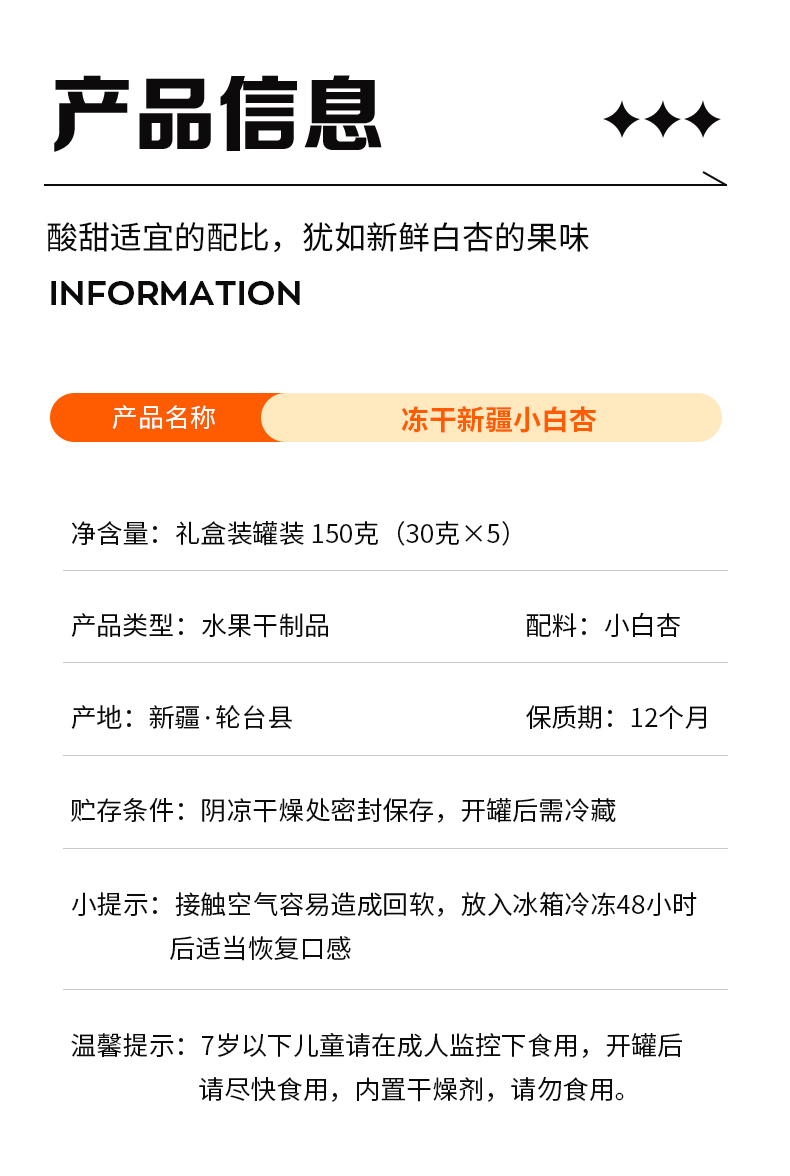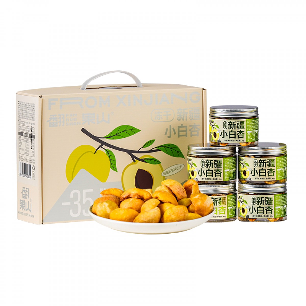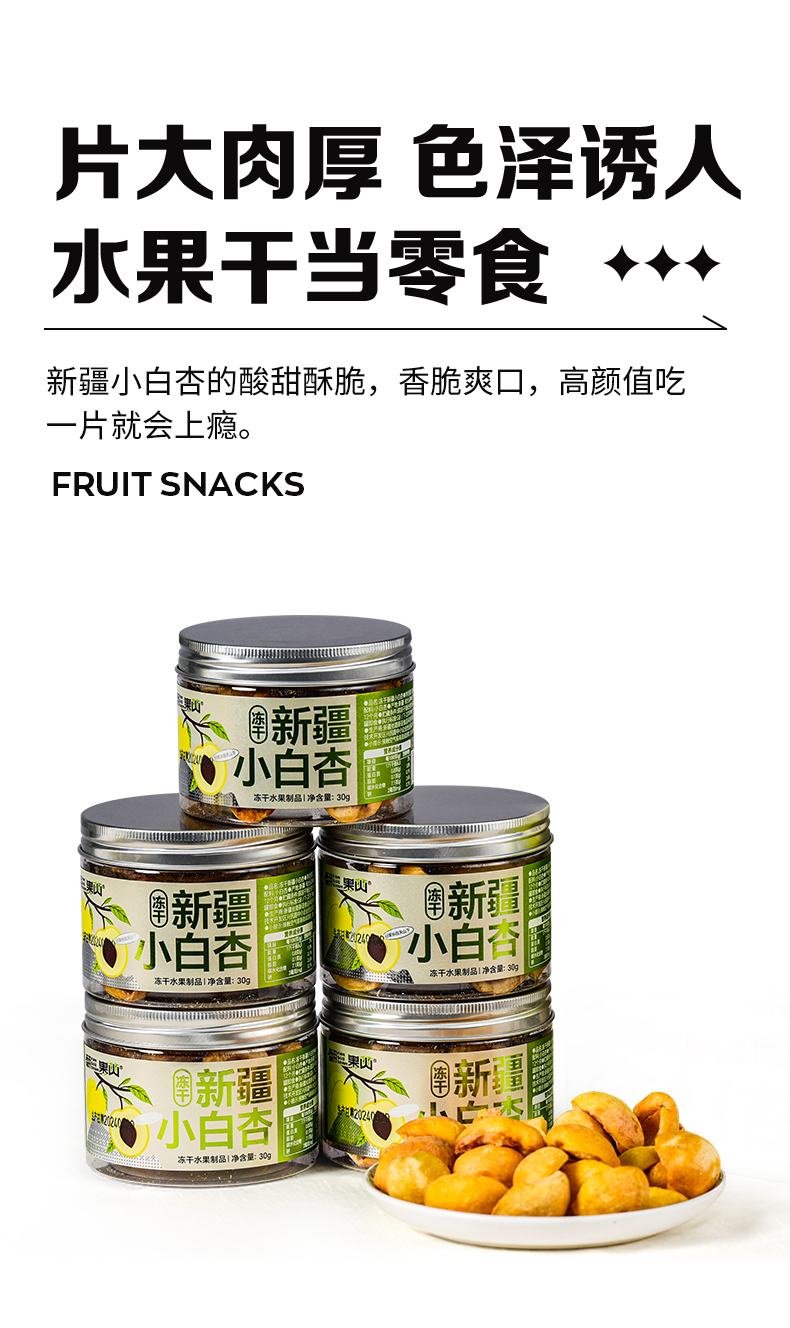 商品名称:翻果山新疆冻干水果小白杏冻干零添加非油炸30g5罐礼盒装