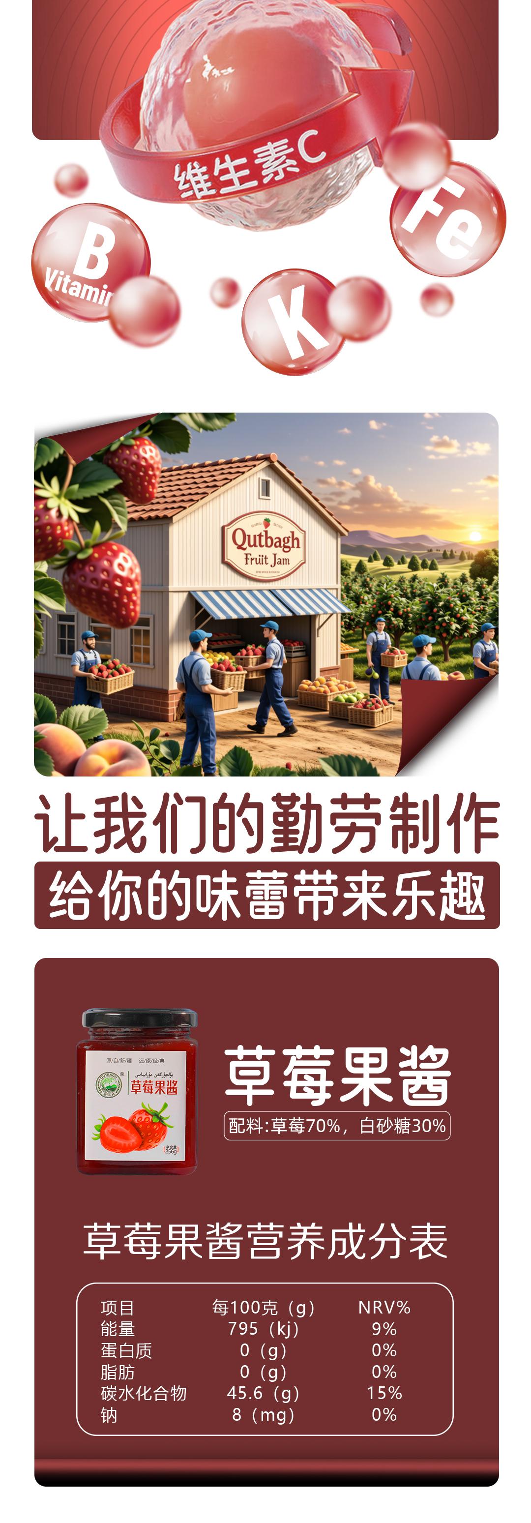 商品名称:草莓果酱纯水果酸酸甜甜涂抹面包奶茶店泡茶新疆特产天然无添加256g/瓶