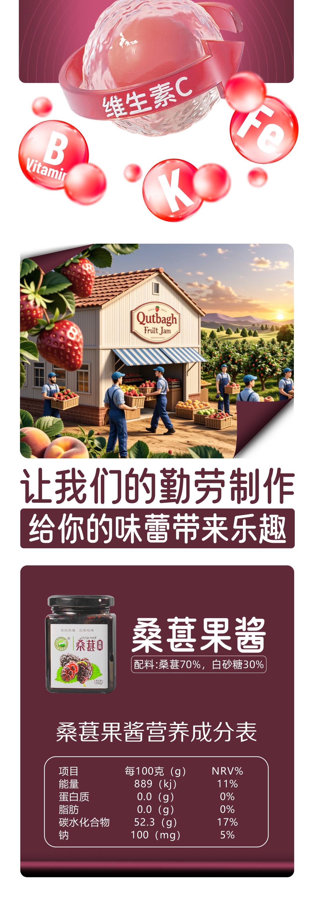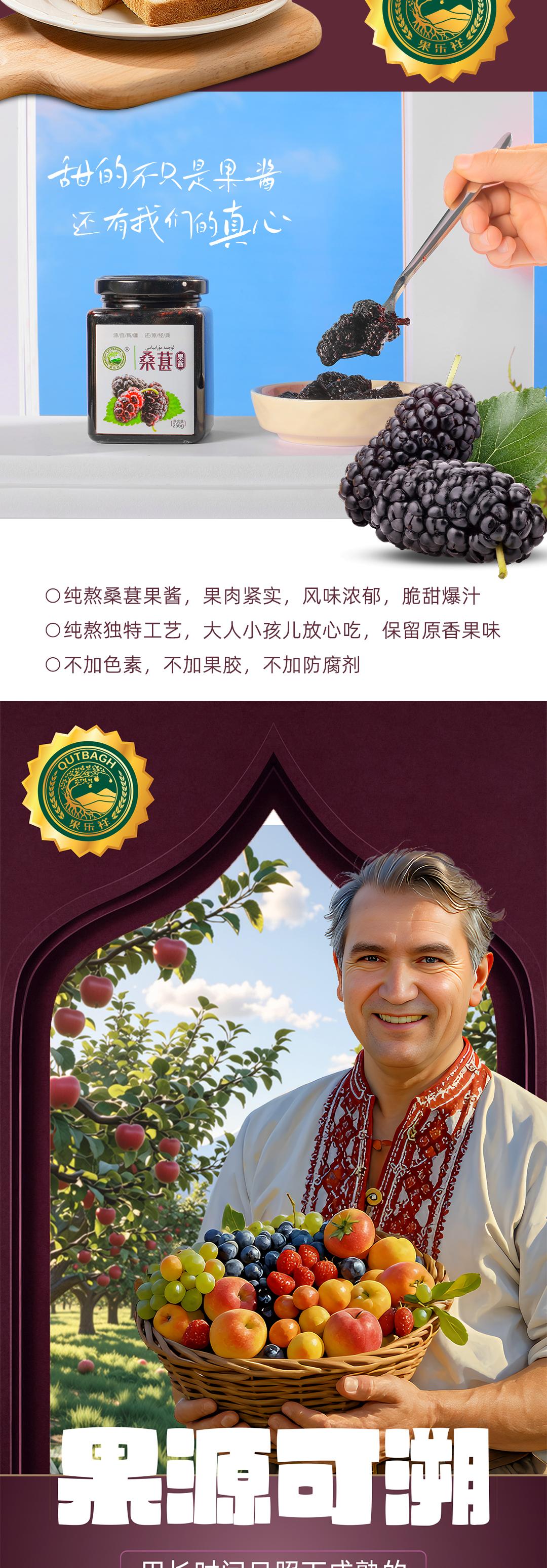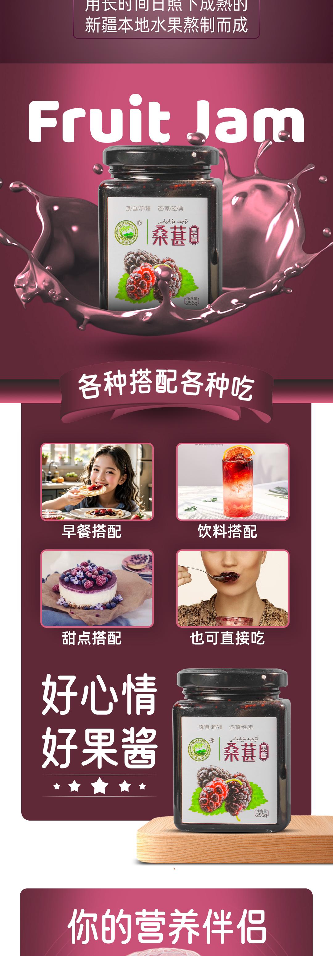 商品名称:新疆桑葚伊犁特产果乐祥桑葚果酱果肉早餐酸奶伴侣256克瓶装包邮