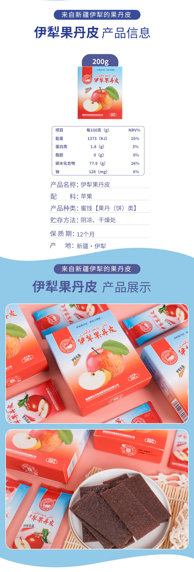 商品名称:新疆果乐祥苹果果丹皮纯苹果儿时的味道传统手工艺200g*1盒