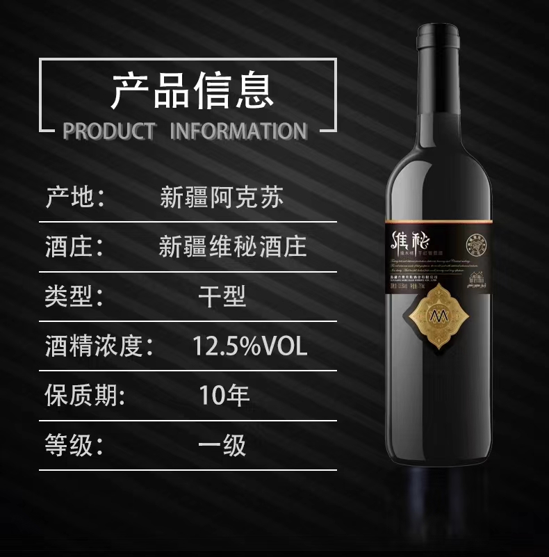 商品名称:维秘橡木桶干红葡萄酒 源自新疆 纯果发酵 新疆礼物特产750ml/瓶
