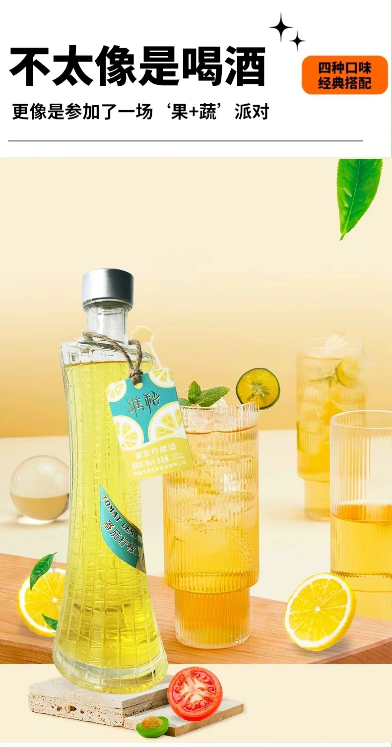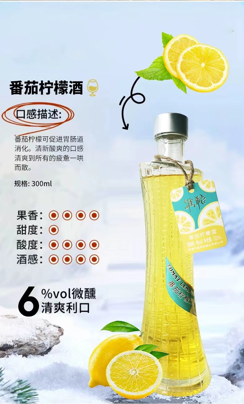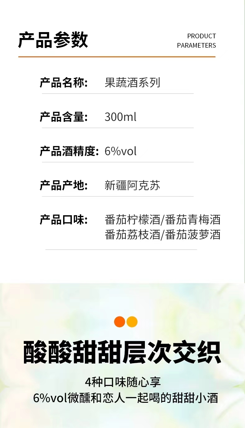 商品名称:维秘番茄果蔬酒荔枝/青梅/菠萝/柠檬源自新疆纯果发酵6%vol