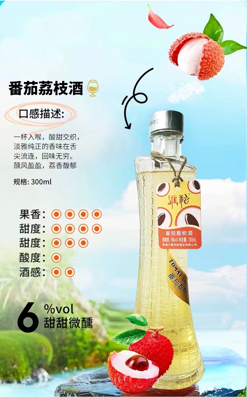 维秘番茄果蔬酒荔枝/青梅/菠萝/柠檬源自新疆纯果发酵6%vol