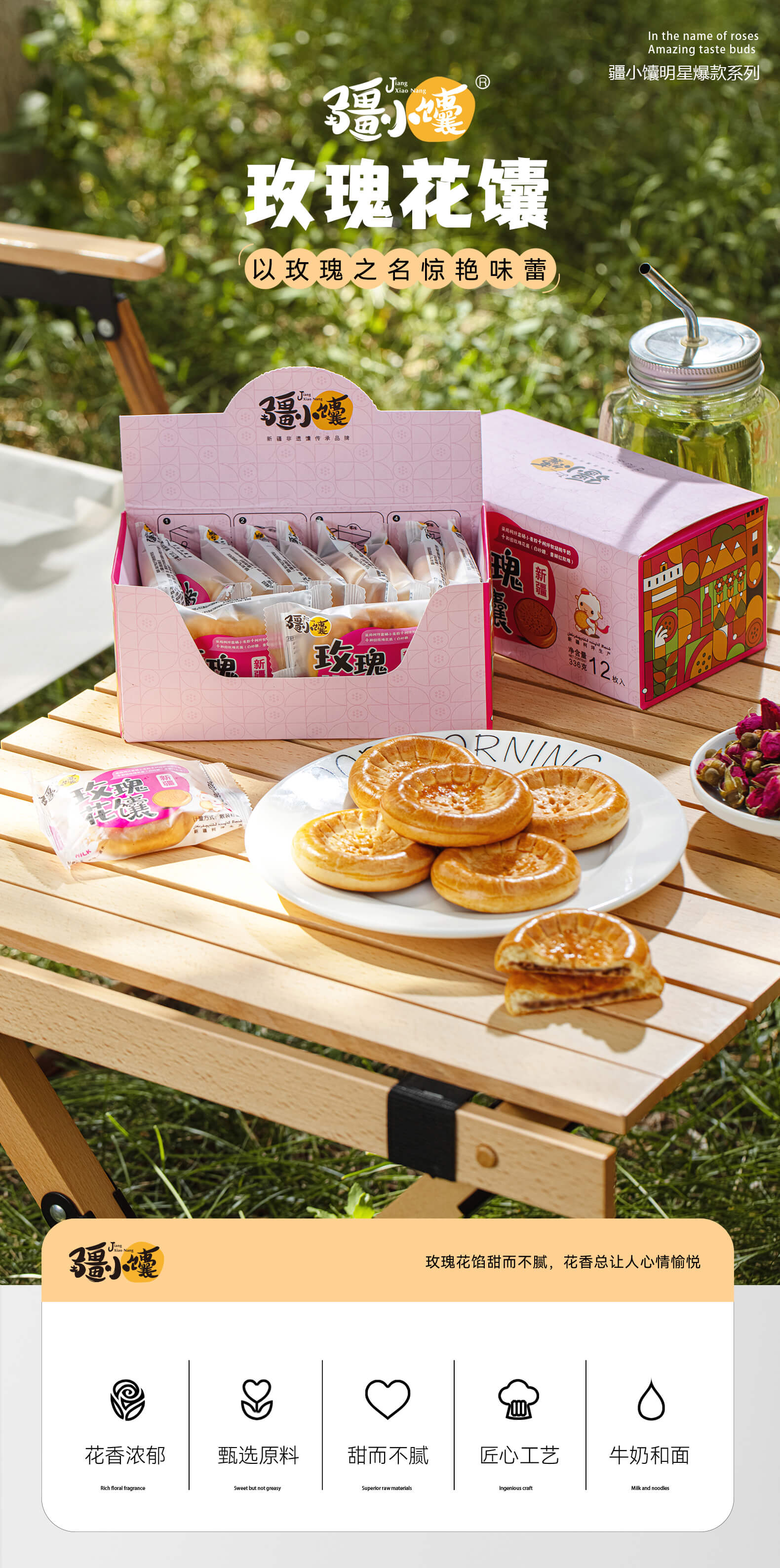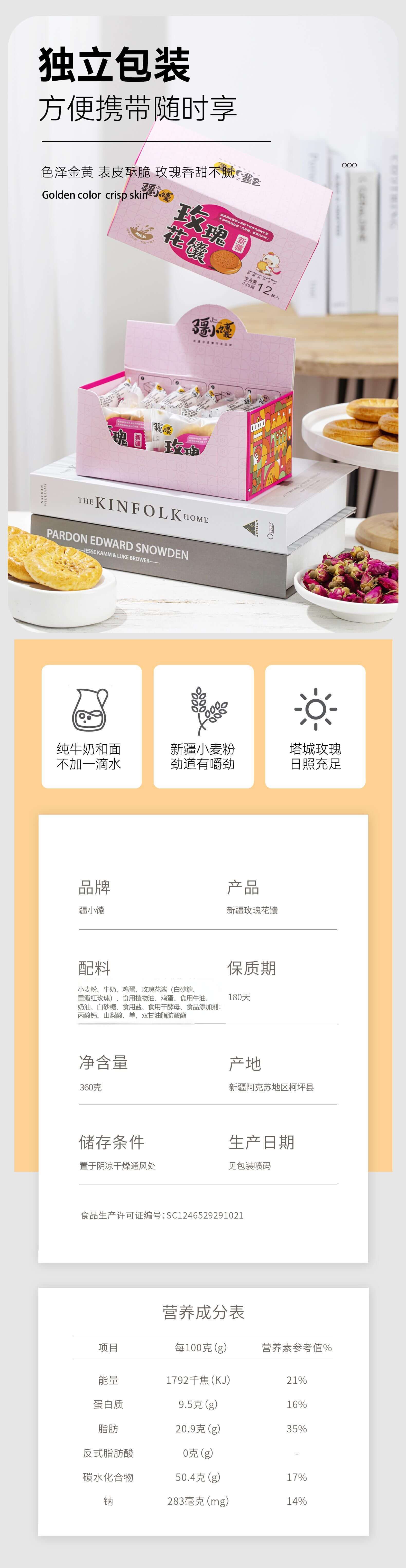 商品名称:疆小馕新疆玫瑰花小油馕原味疆巴馕 小油馕营养早餐独立包装30g*12粒/盒