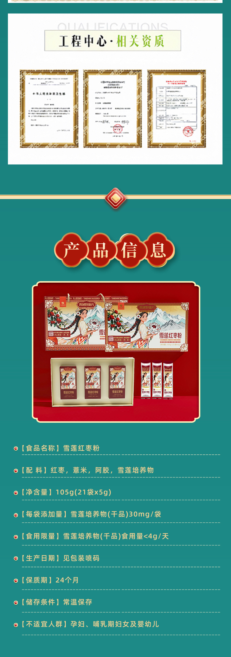 配料 :红枣、薏米、阿胶、雪莲培养物