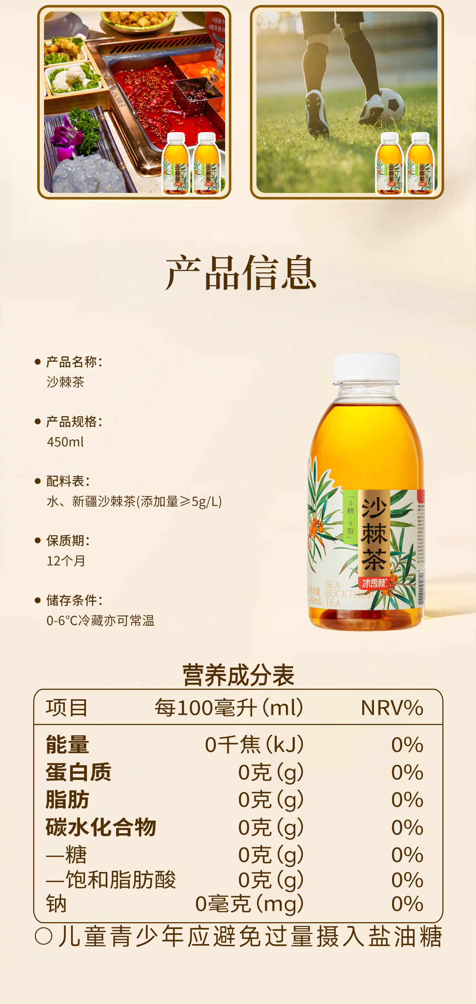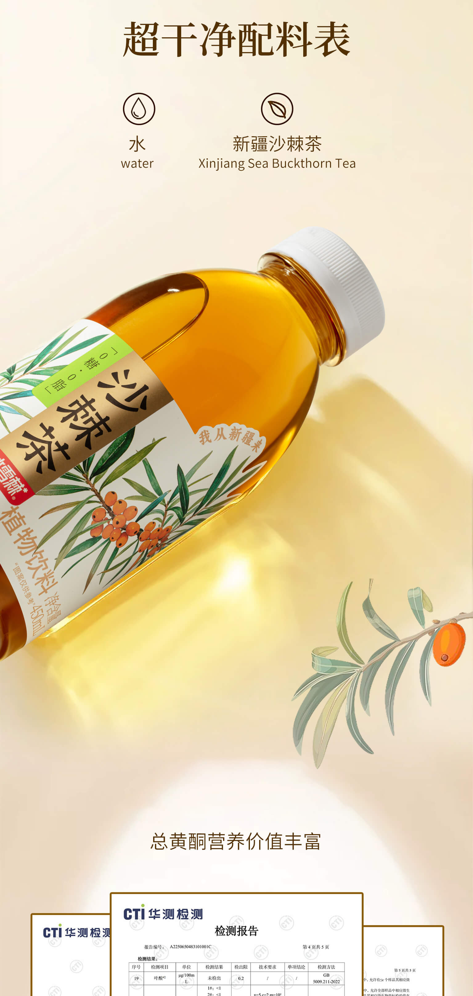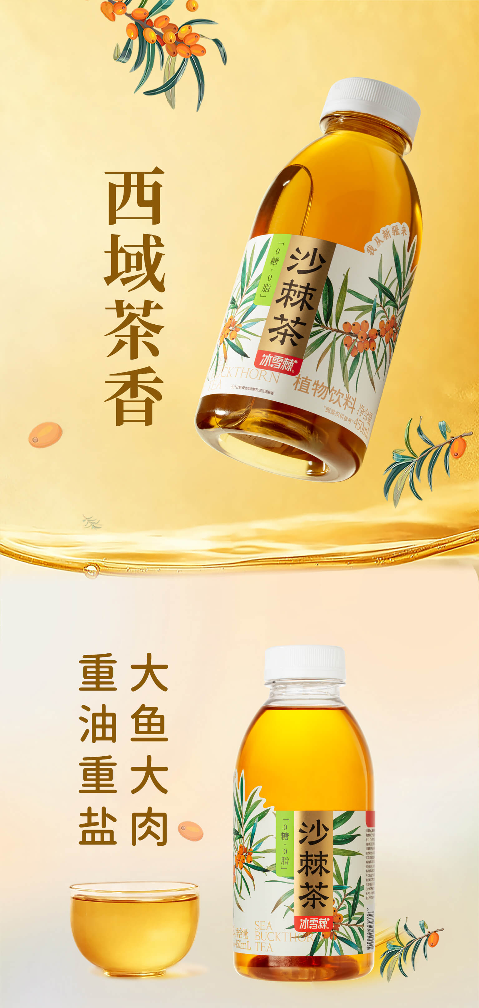 商品名称:冰雪棘新疆原味沙棘茶450ml*6瓶原叶冷萃茶0糖0脂降茶无糖茶