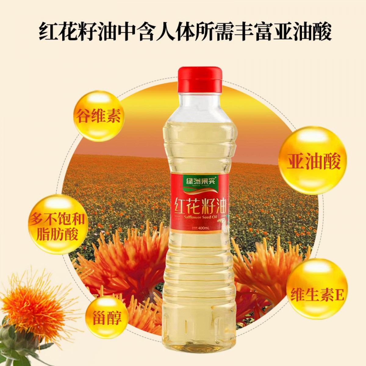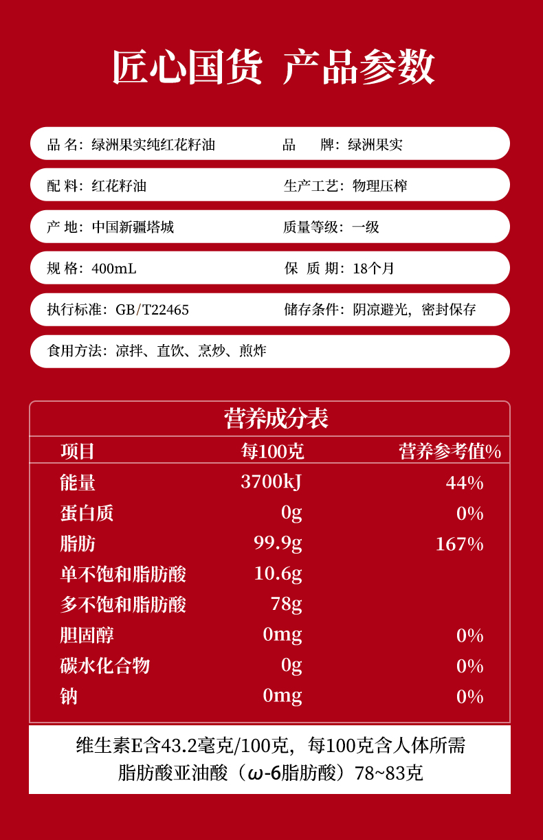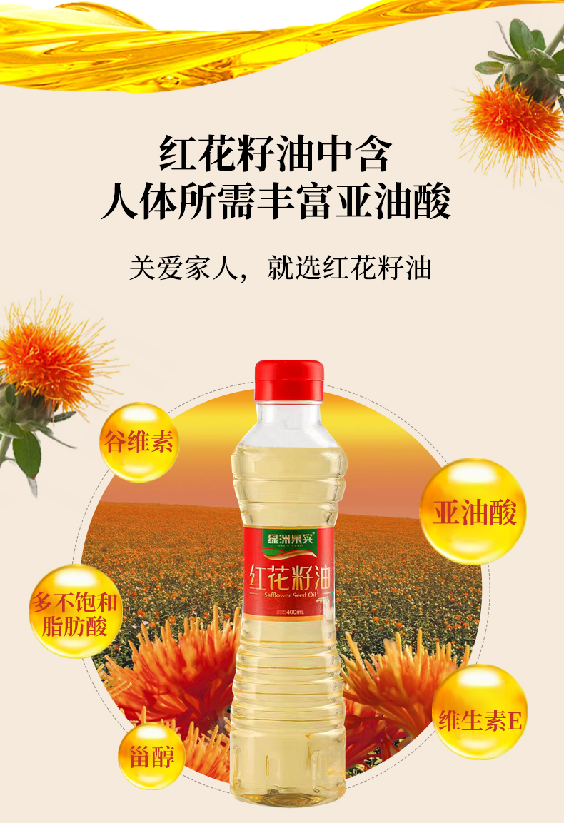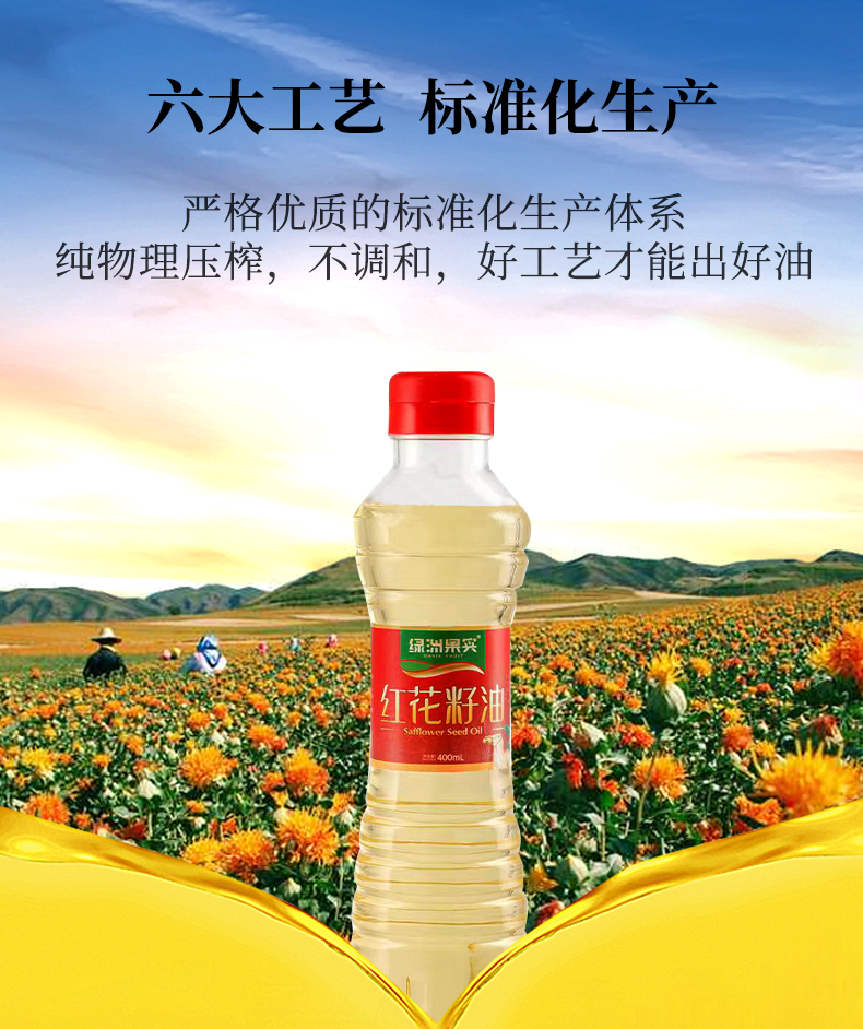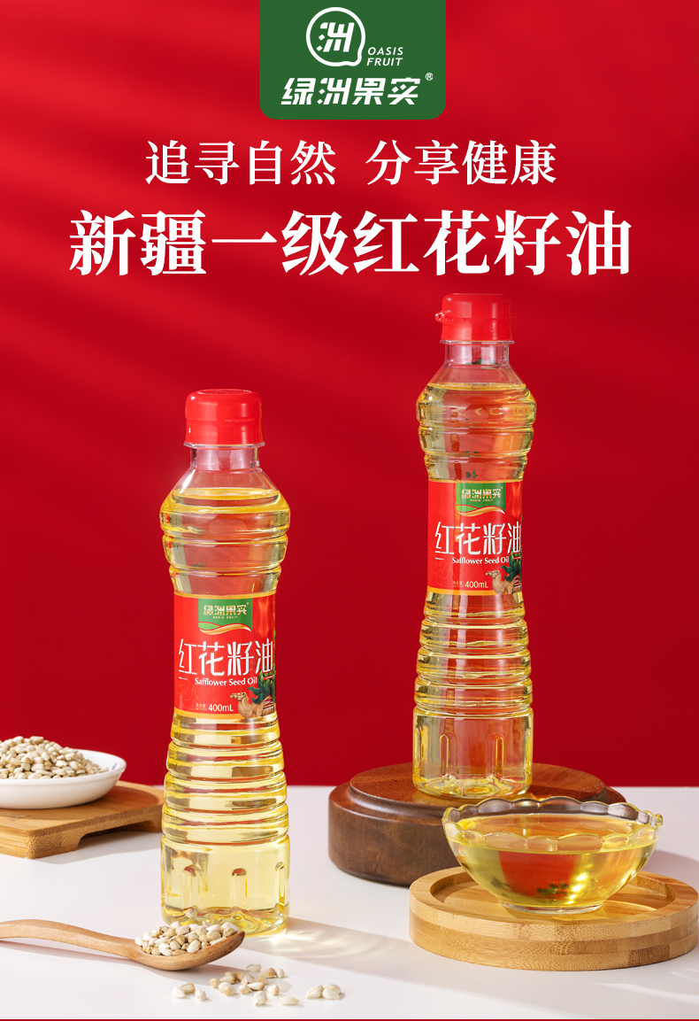 商品名称:新疆塔城绿洲果实红花籽油 物理压榨食用油 炒菜烹饪400ml体验装