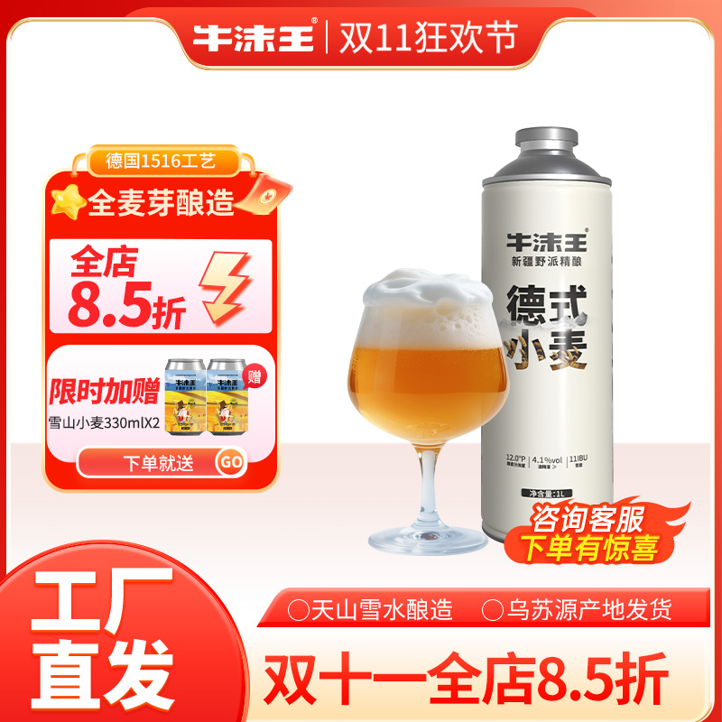 新疆乌苏市牛沫王鲜啤德式小麦精酿啤酒新疆礼物高端啤酒1L*6罐