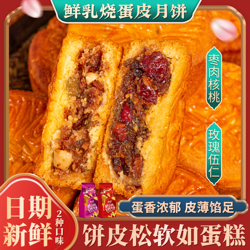 新疆盼月蛋月烧320g/袋鲜乳烧蛋皮月饼中式糕点