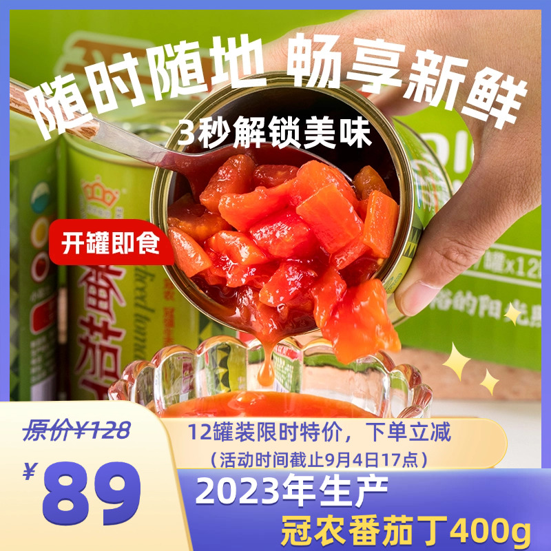 【2023年8-9月生产】新疆冠农番茄丁 零添加 新鲜去皮西红柿400g*3罐